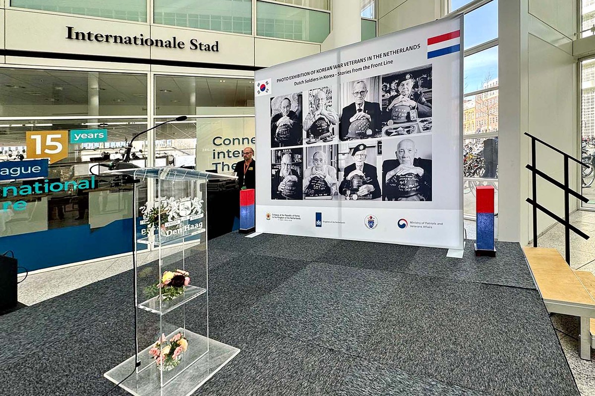 De fototentoonstelling 'Nederlandse soldaten in Korea – Verhalen van de frontlinie' werd op woensdag 8 april 2026 officieel geopend in het Atrium van het Stadhuis in Den Haag. Het evenement, georganiseerd op uitnodiging van de Zuid-Koreaanse ambassadeur Zijne Excellentie Hong Seok-In, bracht een uiteenlopende groep genodigden samen. Onder hen bevonden zich zeven Korea-veteranen, waaronder drie die actief hadden deelgenomen aan het internationale 'Project Soldier'.