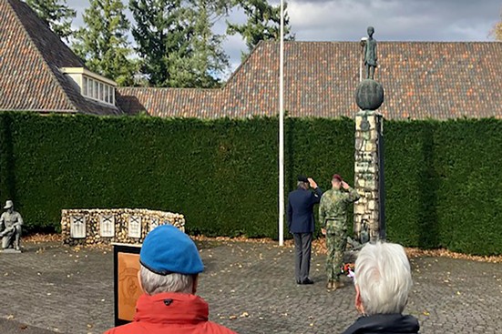 Na de lunch werd bij het Korea-monument een korte herdenking gehouden met een toespraak van de voorzitter VOKS en de commandant van B-Wonju. Samen legden zij daarna een bloemstuk bij het monument.