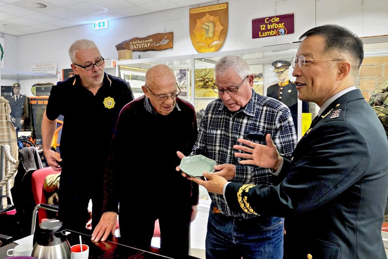Kolonel Kim werd hartelijk verwelkomd door de medewerkers van het museum, samen met voorzitter van de VOKS, Paul Gommers, en secretaris Leo Schreuders. Daarnaast waren ook Korea-veteraan Theo Haver, oude districtscommissaris William Roza, en enkele studenten van de VEVA-opleiding van Defensie aanwezig.