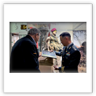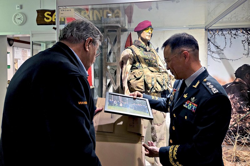 Als teken van waardering kreeg de kolonel van de VOKS een stropdas met het Indianhead-embleem, die hij meteen omdeed, evenals een foto die in 2021 in de tuin van het museum met hem was gemaakt. Daarnaast had de kolonel een geschenk meegenomen als herinnering voor het museum. Al met al werd het een zeer geslaagde en plezierige middag.