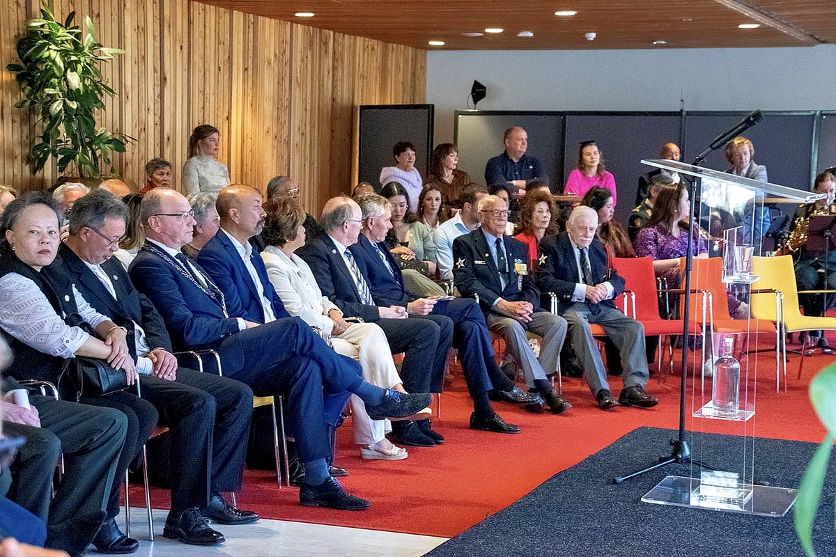Twee Korea-veteranen, de heren Hazeleger en Haver, namen als gasten deel aan de ceremonie om hun overleden kameraad te herdenken.
