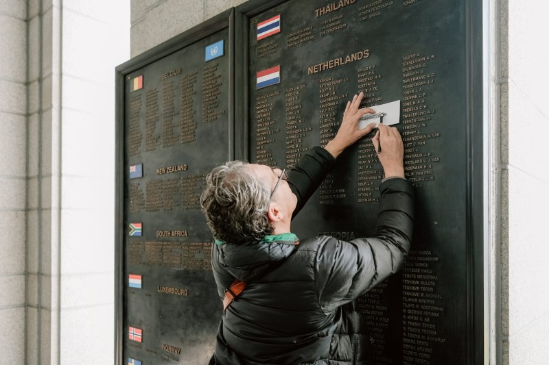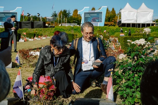 Ook gingen ze naar de UNMCK in Busan, waar mevrouw Rijshouwer en haar zoon eindelijk het graf van Marius Rijshouwer konden bezoeken.